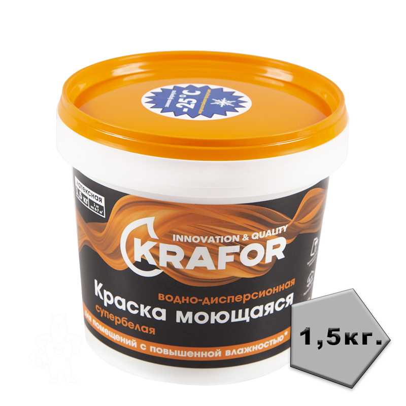 КРАСКА В/Д ДЛЯ ПОТОЛКОВ СУПЕРБЕЛАЯ 1,5 КГ «KRAFOR»