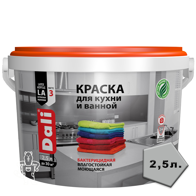 Купить Краска латексная «DALI» для кухни и ванной База А 2,5кг. Влагостойкая Биозащитная