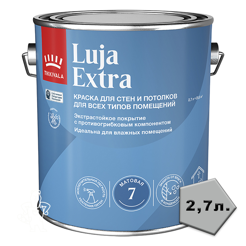 Краска LUJA EXTRA-7 д/стен и потолк. экстрастойк. мат. База А 2,7л TIKKURILA