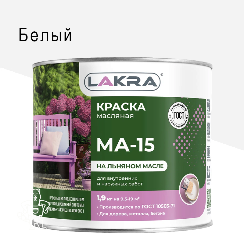 Краска Лакра МА-15 предназначена для нанесения на деревянные и металлические поверхности внутри и вне помещений.