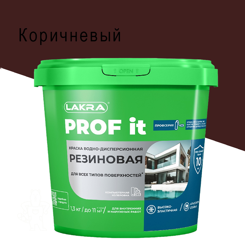 Купить Краска резиновая для всех типов поверхностей ЛАКРА PROF IT Коричневая RAL 8017 1,3 кг