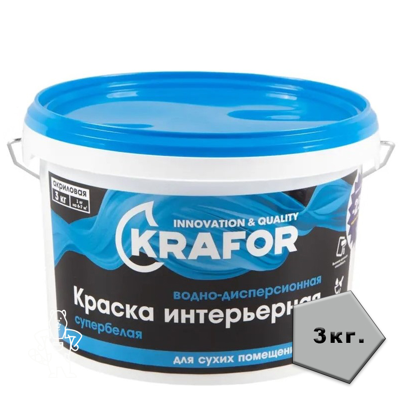 Купить КРАСКА В/Д ДЛЯ ПОТОЛКОВ СУПЕРБЕЛАЯ 3КГ. KRAFOR в Ликино-Дулево с доставкой по городу и в другие города.