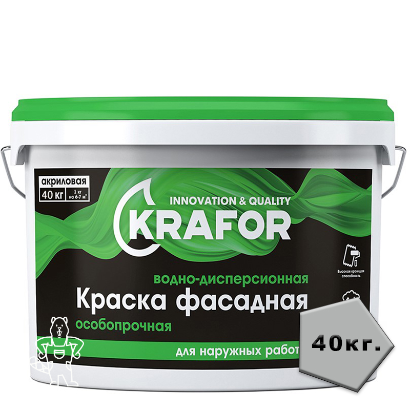 Купить КРАСКА В/Д ФАСАДНАЯ ОСОБОПРОЧНАЯ 40 КГ ЗЕЛЕНАЯ «KRAFOR» в Ликино-Дулево с доставкой по городу и в другие города.