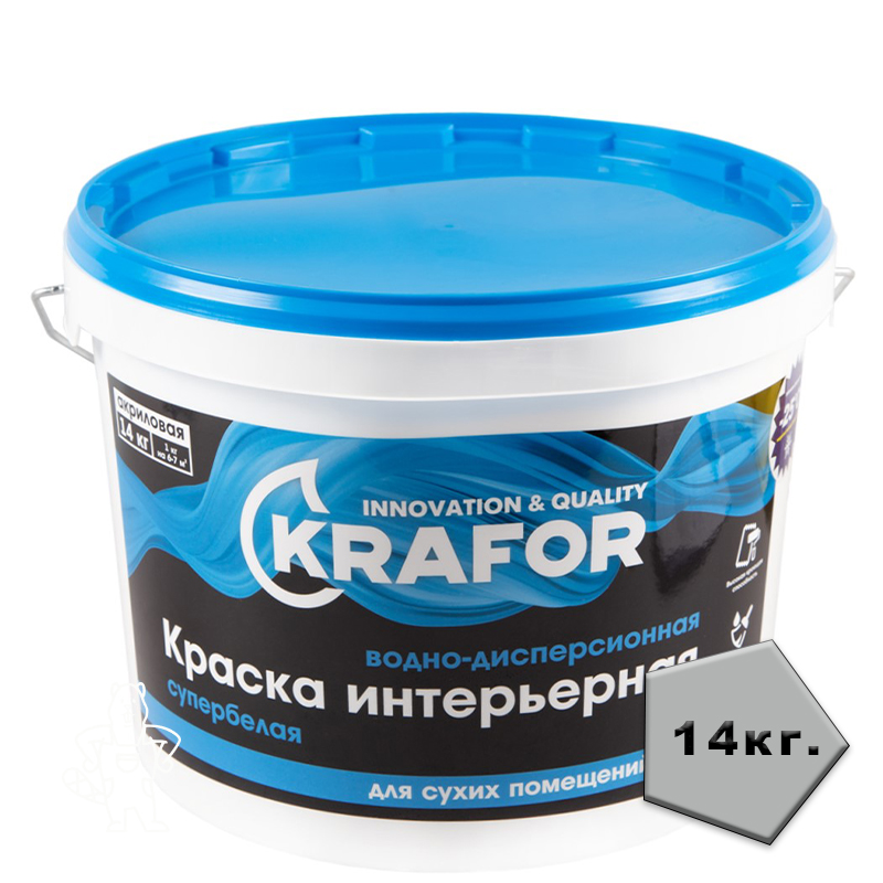 Купить КРАСКА В/Д ИНТЕР. СУПЕРБЕЛАЯ 14 КГ (1) «KRAFOR»(син) в Ликино-Дулево с доставкой по городу и в другие города.