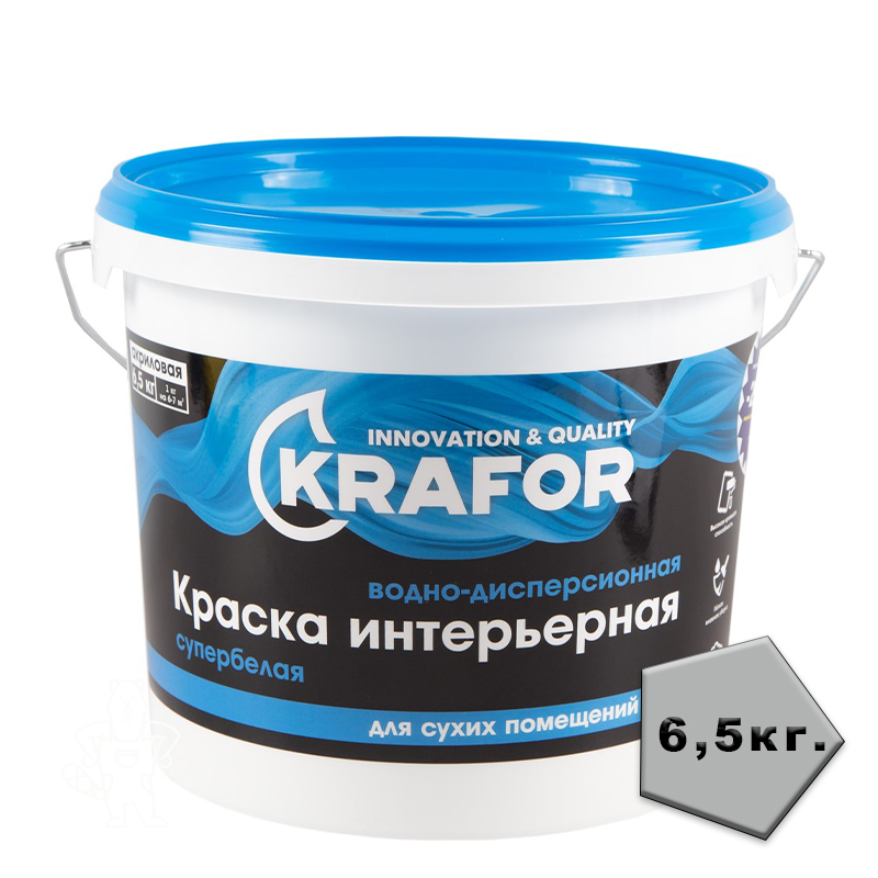 Купить КРАСКА В/Д ИНТЕР. СУПЕРБЕЛАЯ 6,5 КГ (1) «KRAFOR»(син) в Ликино-Дулево с доставкой по городу и в другие города.