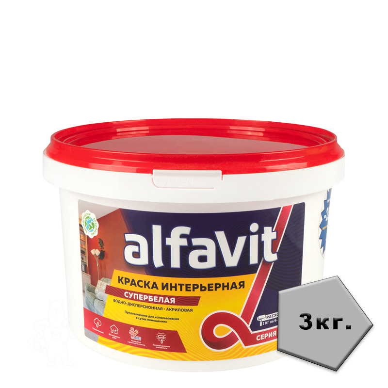 Купить КРАСКА В/Д ИНТЕРЬЕРНАЯ СУПЕРБЕЛАЯ «ALFAVIT» 3КГ АЛЬФА в Ликино-Дулево с доставкой по городу и в другие города.