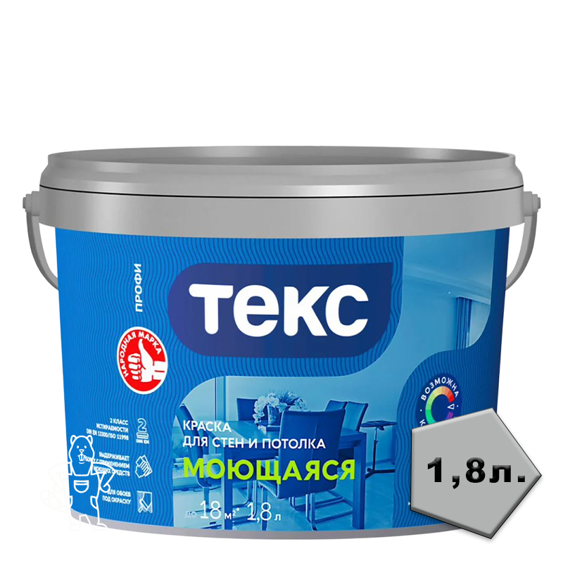 Краска в/д УНИВЕРСАЛ моющаяся База А 1,8 л ТЕКС