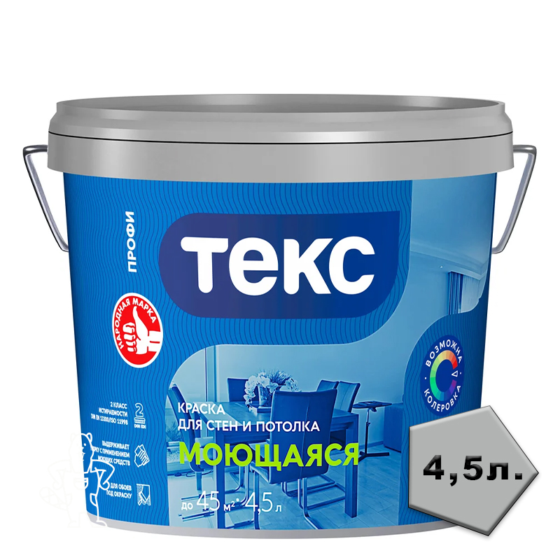 Купить Краска в/д УНИВЕРСАЛ моющаяся База А 4,5 л ТЕКС