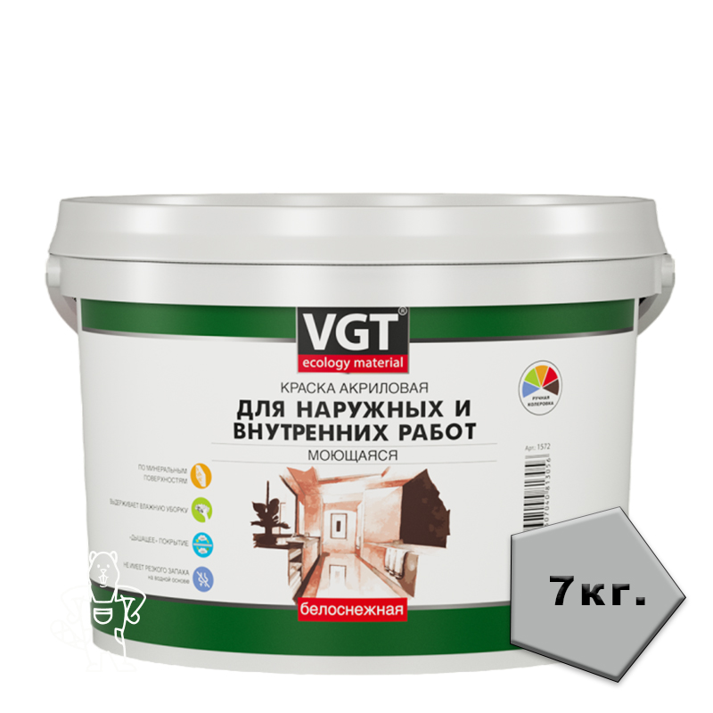 Купить КРАСКА ВД-АК-1180 ДЛЯ НАР/ВН РАБ МОЮЩАЯСЯ БЕЛОСНЕЖНАЯ 7 КГ ВГТ в Ликино-Дулево с доставкой по городу и в другие города.
