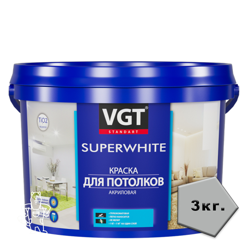КРАСКА ВД-АК-2180 ДЛЯ ПОТОЛКОВ СУПЕРБЕЛАЯ 3 КГ ВГТ