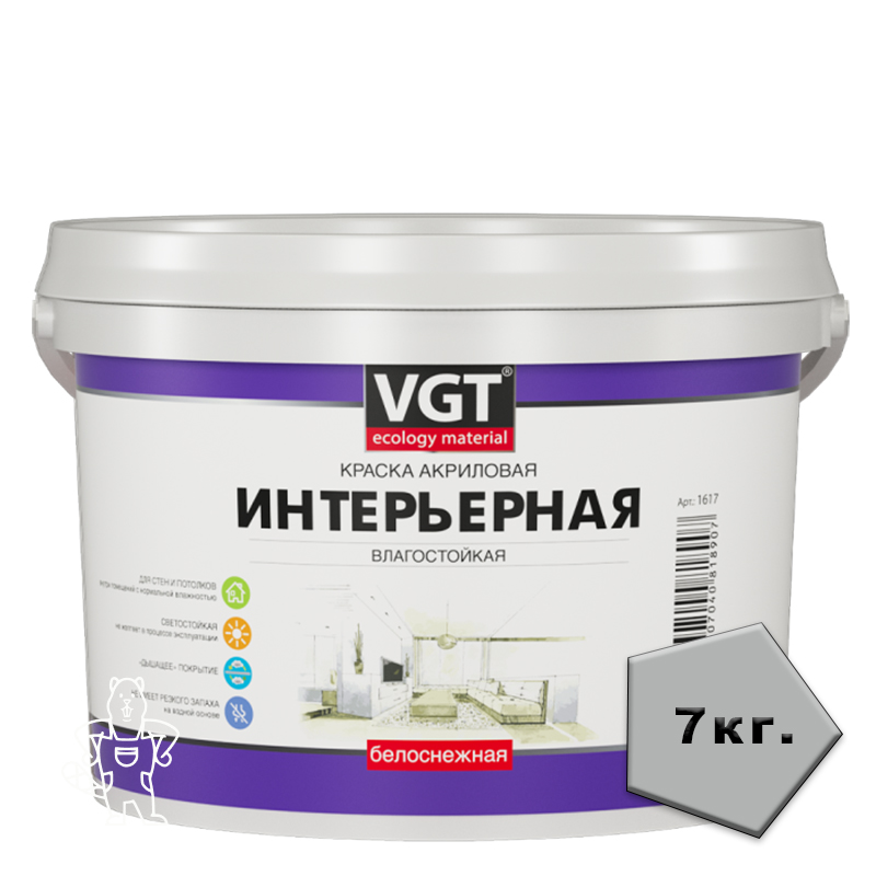 КРАСКА ВД-АК-2180 ИНТЕРЬЕРНАЯ БЕЛОСНЕЖНАЯ 7 КГ ВГТ