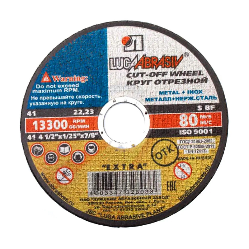 Круг тонкий отрезной Луга-Абразив 115х1,2 (А 54, тип 41 — прямой)предназначен для эффективной обработки материалов с сильным сопротивлением разрыву, обдирки отливок из стали, проката, высокопрочного чугуна, бронзы, сплавов из никеля и алюминия. Точность и чистота реза обеспечивается четко выверенной конструкцией с минимальным дисбалансом в работе.