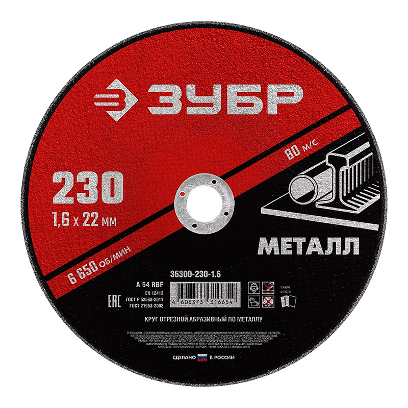 Круг отрезной по металлу 230*1,6*22мм ЗУБР