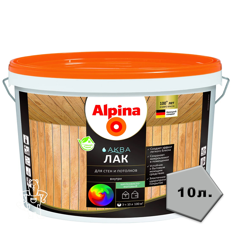 ЛАК АКРИЛ.»АКВА» Д/СТЕН И ПОТОЛКОВ ШЕЛКОВИСТО-МАТОВЫЙ 10Л ALPINA