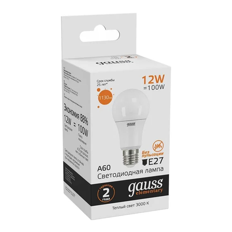 Купить Лампа Gauss Elementary A60 12W 3000K E27 в Ликино-Дулево с доставкой по городу и в другие города.
