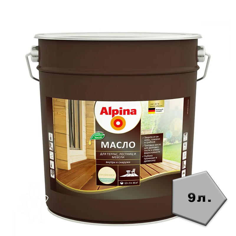 Купить Масло ALPINA для террас, лестниц, мебели Бесцветный 9Л в Ликино-Дулево с доставкой по городу и в другие города.