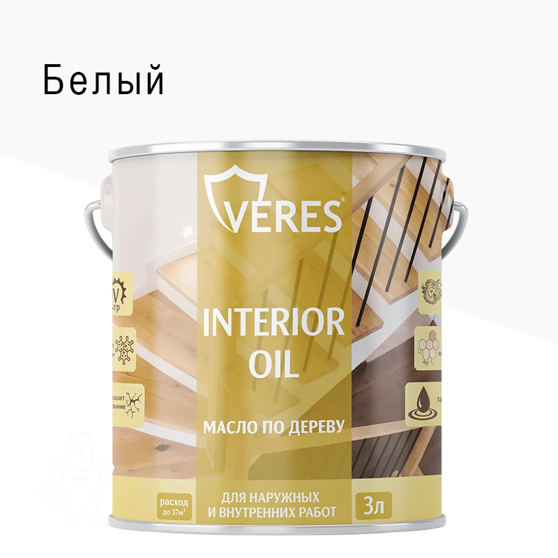 Купить МАСЛО ПО ДЕРЕВУ «INTERIOR OIL» БЕЛЫЙ 3 Л «VERES» в Ликино-Дулево с доставкой по городу и в другие города.