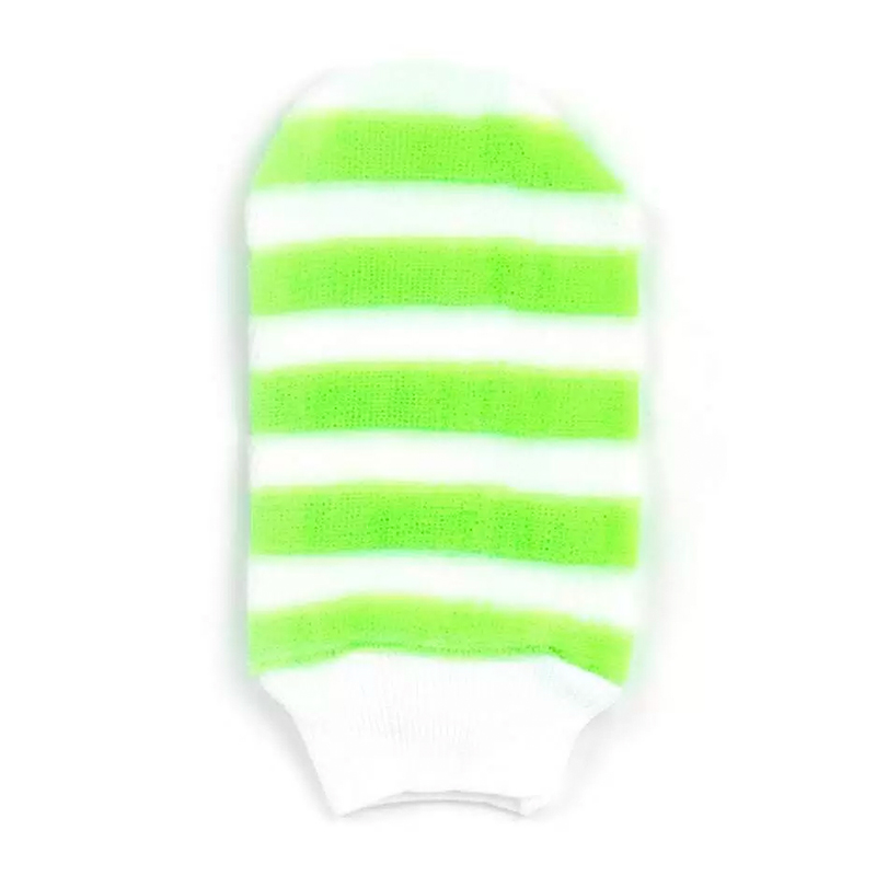 Двусторонняя мочалка-рукавица с петелькой для подвешивания.