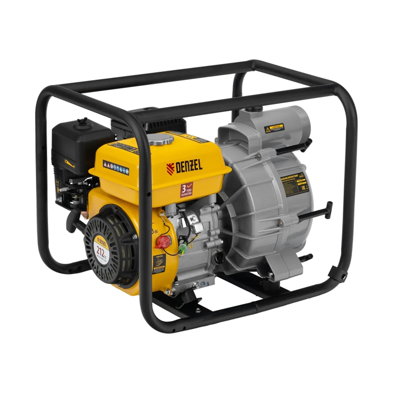 Бензиновая мотопомпа Denzel PX-80D7 99206 с двигателем мощностью 7 л. с. и штуцерами диаметром 3″ обеспечивает напор 30 м и применяется для откачки грязной воды со скоростью 1300 л/мин из затопленных помещений, а также бассейнов, котлованов, траншей, погребов, колодцев глубиной до 8 м. Диаметр входного и выходного отверстий составляет 80 мм, что обеспечивает высокую производительность. Мотопомпа оптимальна для использования во время земляных работ, т. к. может работать с сильно загрязненной водой, содержащей фракции диаметром до 30 мм. Также подходит для подачи чистой воды на строительную площадку, небольшое предприятие, дачный участок и в систему полива.