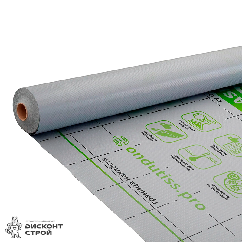 ONDUTISS BASIC D – двухслойная гидро-пароизоляционная плёнка из серого полипропилена, ламинированного защитной плёнкой.