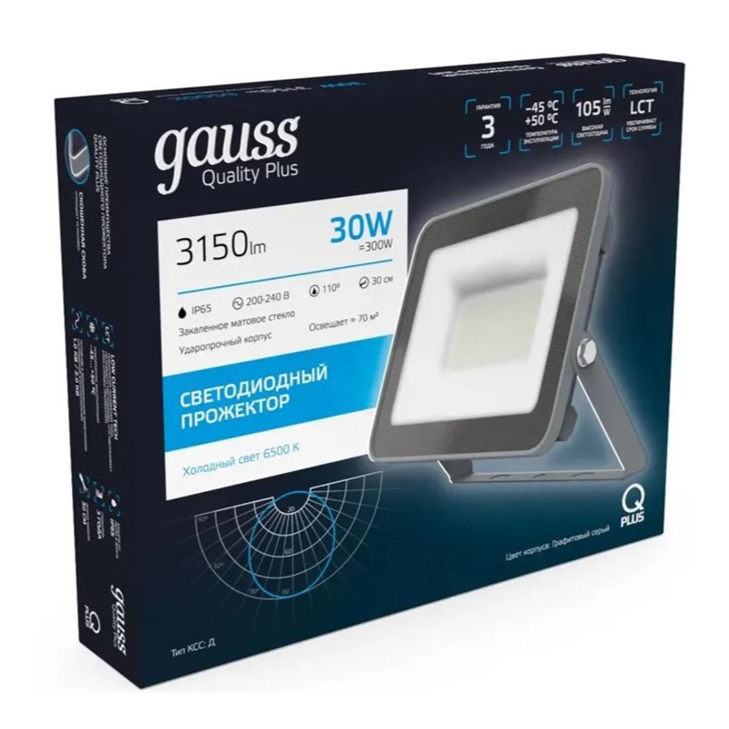 Прожектор Gauss Qplus 30W 3150lm 6500K 200-240V IP 65 графитовый LED
