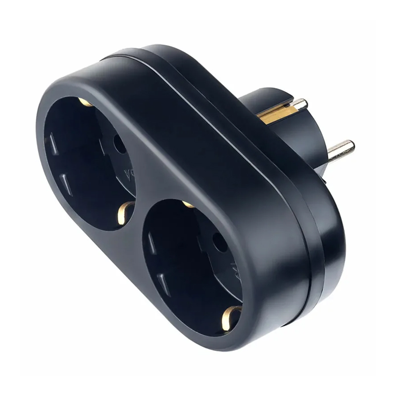 Главная МАГАЗИН ЭЛЕКТРИКА Выключатели, розетки Вилки, тройники, разветвители Разветвитель электр. двойной б/з 16А черный
