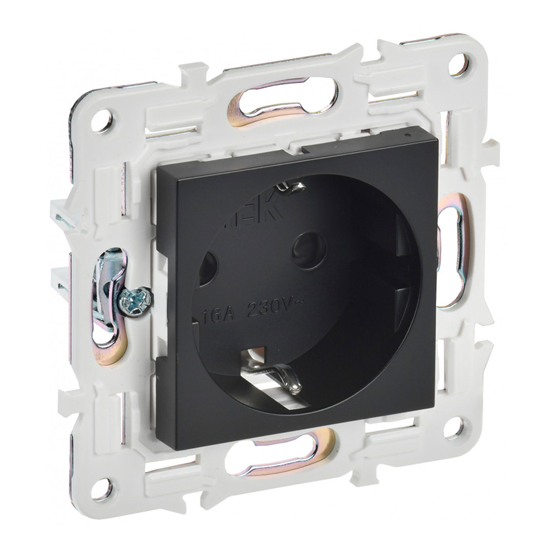 Главная ЭЛЕКТРИКА Выключатели, розетки IEK SKANDY Розетка 1СП с/з с защ.шт. 16А черный IEK SKANDY