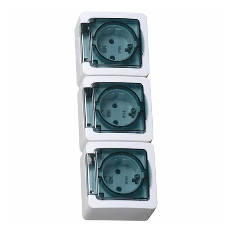Блок выключатель 2ОП+розетка 1ОП с/з серый IP54 REXANT