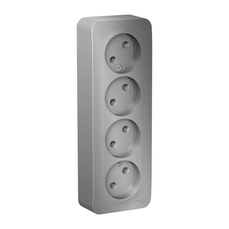 Главная МАГАЗИН ЭЛЕКТРИКА Выключатели, розетки SE Розетка 4ОП б/з без штор. 16А 250В алюминий BLANCA