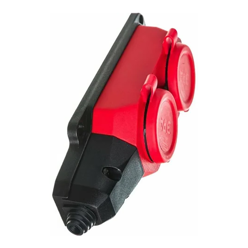Розетка каучук 2 гнезда с/з с крышкой 16А IP44 красный Беларусь