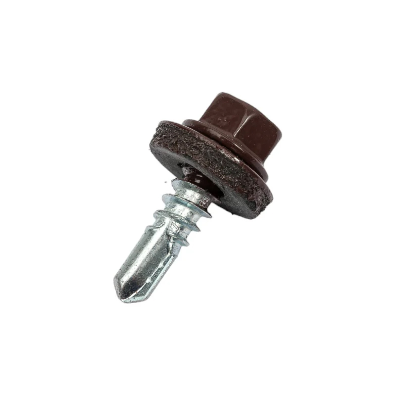 Кровельный саморез КРЕП-КОМП 5,5×19, RAL8017, тёмно-коричневый, 250 шт. ск55198017кф окрашен по каталогу RAL, имеет шестигранную головку под ключ-насадку 8 мм и шайбу с резиновой прокладкой толщиной. Это даёт защиту от попадания влаги под крепёж. Окраске подвергается только головка и верхняя часть шайбы. Используется только высококачественная порошковая краска, в результате чего, покрытие не крошится и не отслаивается. На конце кровельного самореза сверло РТ-3, которое может просверлить металл толщиной до 6 мм и не сломаться.