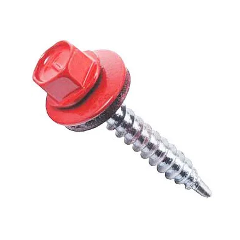 Кровельный саморез по металлу с буром 5,5х25 RAL 3020 (красный) используется при монтаже профнастила и металлочерепицы к конструкциям из металла или древесины. Имеет шестигранную головку с шайбой и прокладку EPDM из синтетического каучука.