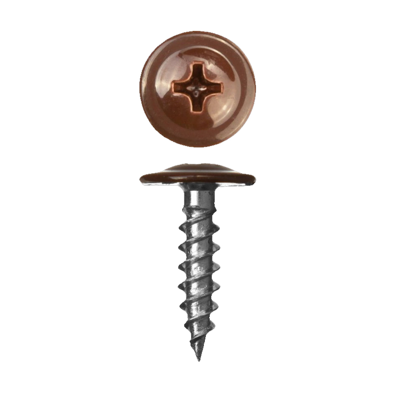Особенности: крепеж произведен из оцинкованной стали, устойчив к коррозии, подходит для наружных работ. Наконечник самореза острый, резьба самонарезающая, с частым шагом. Головка в виде полусферы с увеличенными полями и крестовым шлицем Philips №2. При установке полусферическая головка увеличенного диаметра обеспечивает плотное прилегание листа к основе, предотвращает самовольное раскручивание соединения. Шляпка окрашена в оттенки RAL, что позволяет подобрать крепеж под цвет кровли.