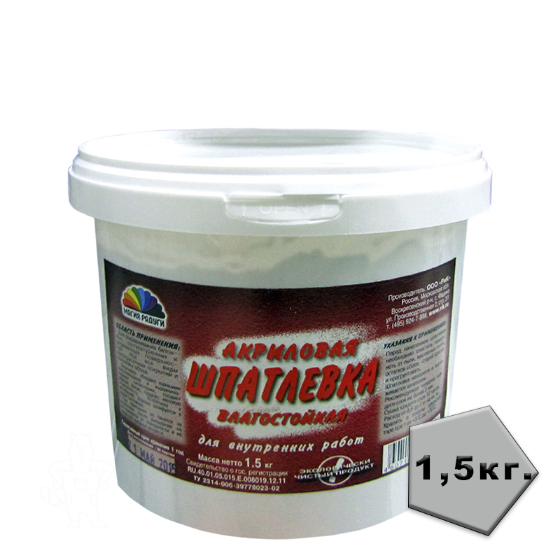 Купить ШПАТЛЕВКА АКРИЛОВАЯ ВЛАГОСТОЙКАЯ 1,5 КГ «РАДУГА» в Ликино-Дулево с доставкой по городу и в другие города.