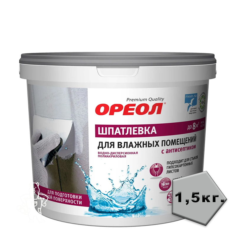 Купить Шпатлевка для влажных помещений полиакриловая с антисептиком Ореол 1,5кг в Ликино-Дулево с доставкой по городу и в другие города.