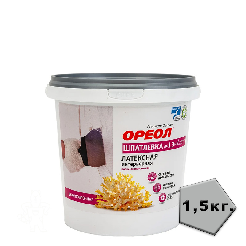 Купить Шпатлевка для внутренних работ латексная Ореол 1,5 кг., в Ликино-Дулево с доставкой по городу и в другие города.