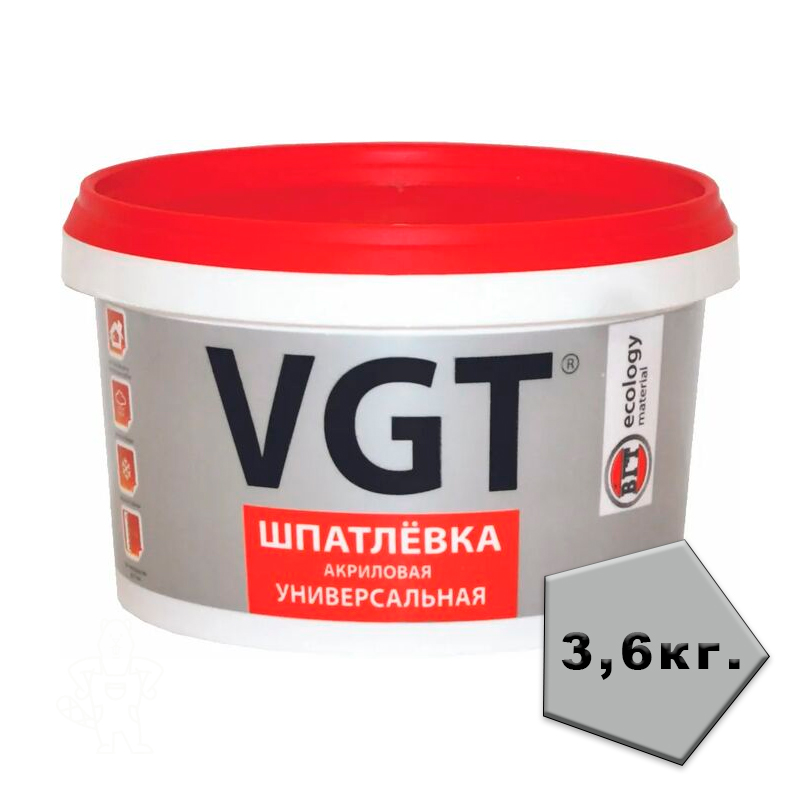 ШПАТЛЕВКА УНИВЕРСАЛЬНАЯ АКРИЛ. Д/ВНУТР. РАБОТ 3,6 КГ (4) «ВГТ» (Ф)
