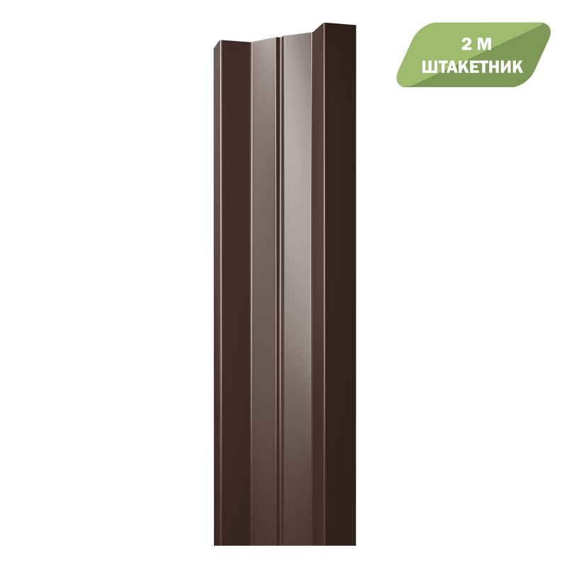 Купить Штакетник М-образный 2 м. прямой ДВУСТОРОННИЙ! коричневый RAL 8017