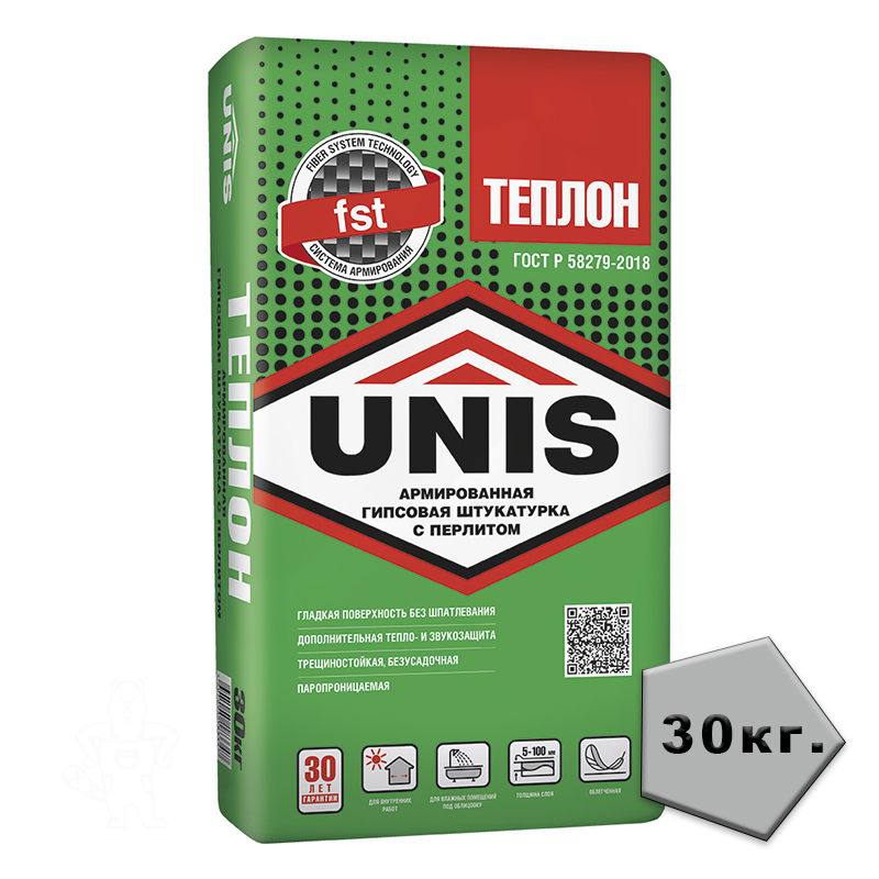 Купить Штукатурка гипсовая Юнис ТЕПЛОН (серый) 30 кг в Ликино-Дулево с доставкой по городу и в другие города.
