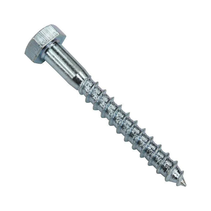 Шуруп для крепления лаг и реек конструктивно представлен в виде металлического стержня с редкой резьбой под дерево. Головка у этих шурупов имеет шестигранную форму под ключ или шестигранную биту. Резьба, в зависимости от типоразмера шурупа, располагается на все длину или немного не доходит до шляпки.