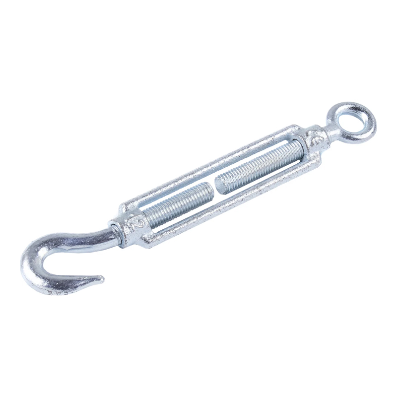 Применяется для фиксации и натяжения стальных тросов и канатов. Изготовлен из оцинкованной стали. Монтаж происходит за счет стягивания по резьбе и сокращения длины изделия