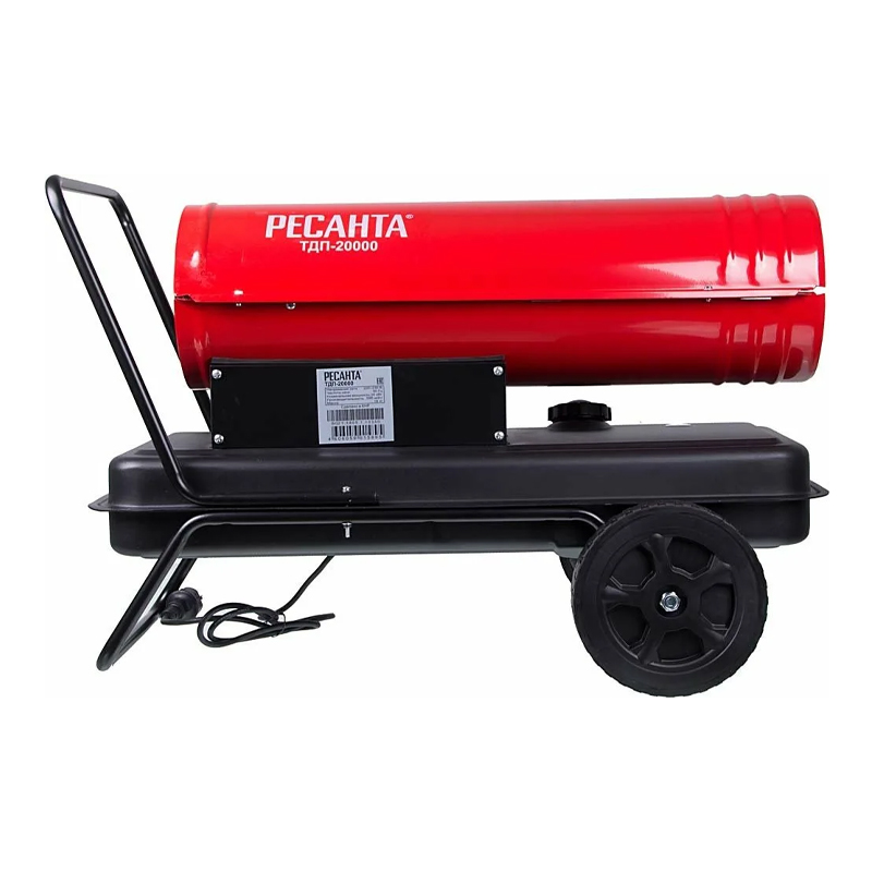 Дизельная тепловая пушка прямого нагрева Ресанта ТДП-20000 мощностью 20 кВт обеспечивает быструю и эффективную вентиляцию и обогрев нежилых помещений. Вместительный топливный бак объемом 12 л в сочетании с экономичным расходом топлива 1,58 кг/ч гарантируют бесперебойную работу до 10 часов.
