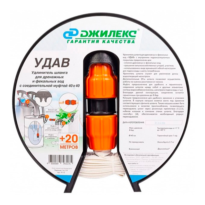Купить Удлинитель шланга УДАВ с муфтой 40*40 2-сл., 20м с катушкой Джилекс