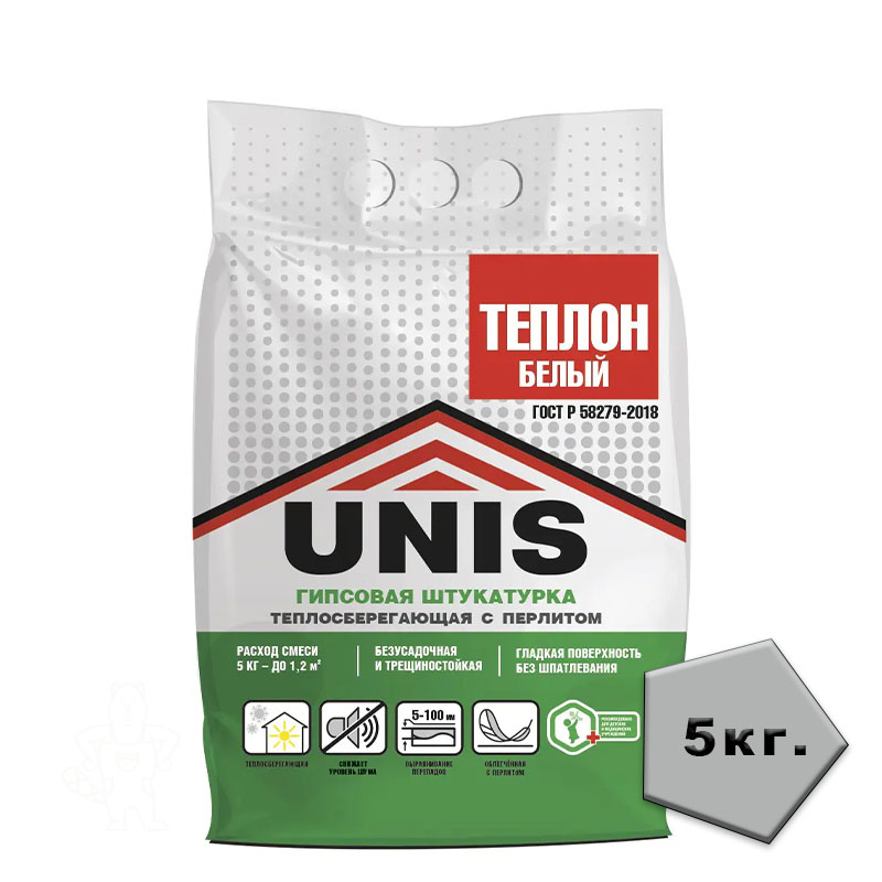 Купить UNIS ТЕПЛОН белый гипсовая штукатурка 5кг. в Ликино-Дулево с доставкой по городу и в другие города.